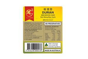 Filling: Mung Beans, Winter Melon Strips, Monthong Durian Flesh, Salted Egg Yolk.